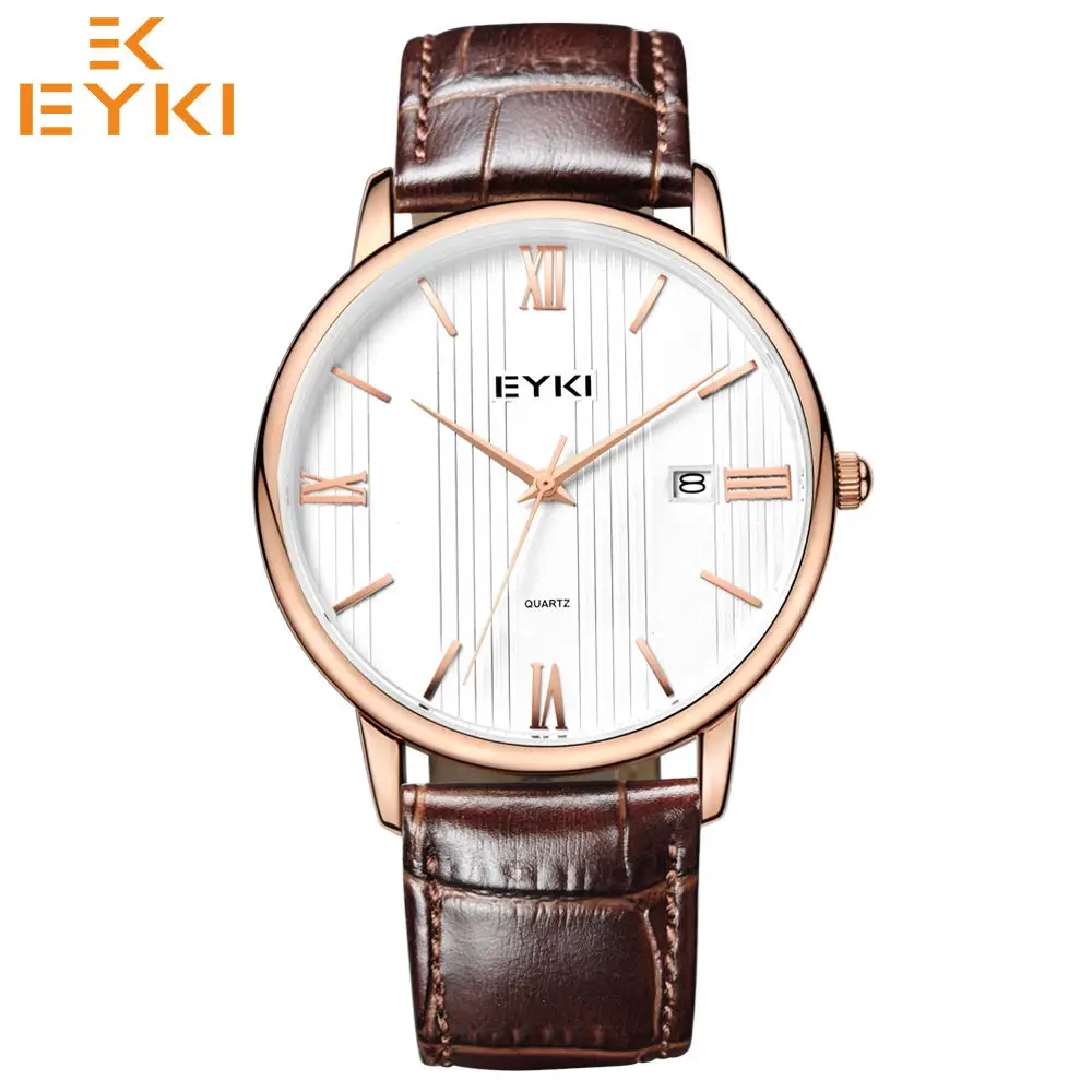 Beste Kopen EYKI Top Brand Luxe Fashion Heren Horloges Waterdicht Kalender Echt Leer Quartz horloge relogio masculino Klok Goedkoop