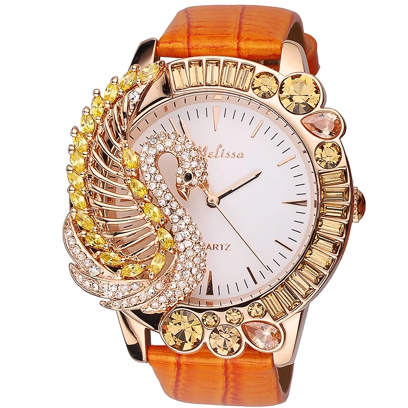 Beste Koop Melissa Prachtige Sieraden Horloges voor Vrouwen Gepersonaliseerde Big Size Strass Zwaan Horloge 3D Dier Echt Lederen Montre Femme Goedkoop