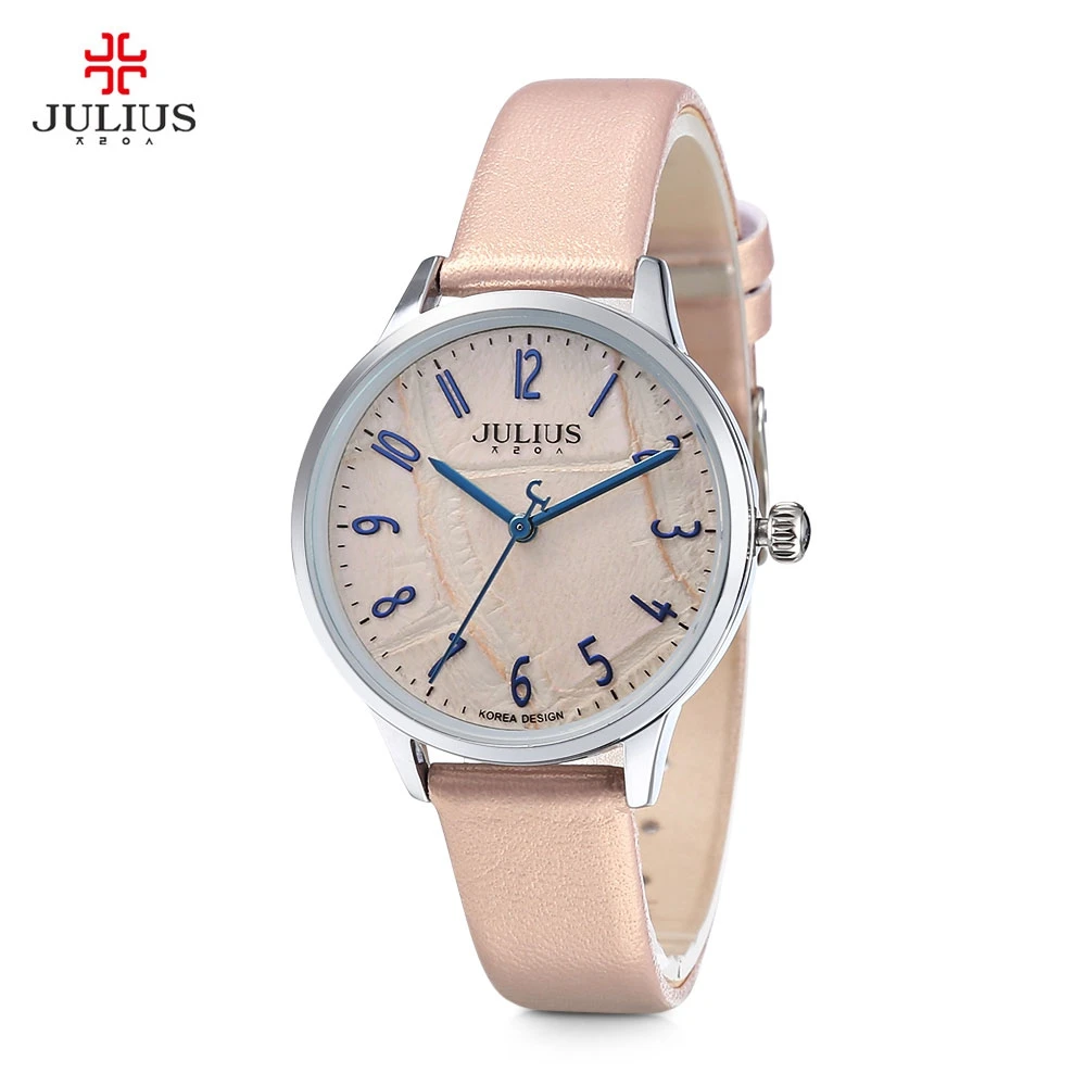 Kopen Goedkoop Julius JA 987 Vrouwelijke Quartz Horloge Lederen Band Contrast Kleur Graan Wijzerplaat Modieuze Polshorloge voor Vrouwen Prijs