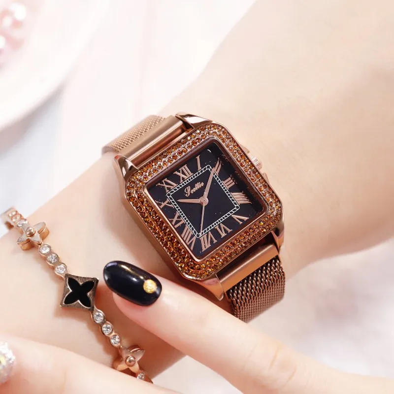 Beste Koop 2018 Top Merk Crystal Dames Horloge Mode Magneet Gesp Vrouwen Jurk Quartz Horloges Vrouwelijke Rvs Klokken montre femme Goedkoop