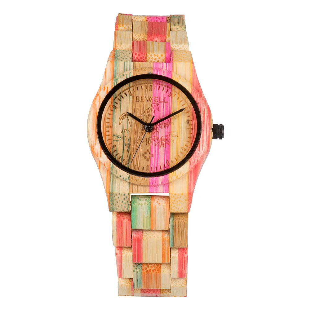 Kopen Goedkoop BEWELL 2018 Bamboe Houten Horloge voor Vrouwen Kleurrijke Ontwerp Ronde Hout Case Handgemaakte Natuurlijke Horloge Dropshipping 105DL Online