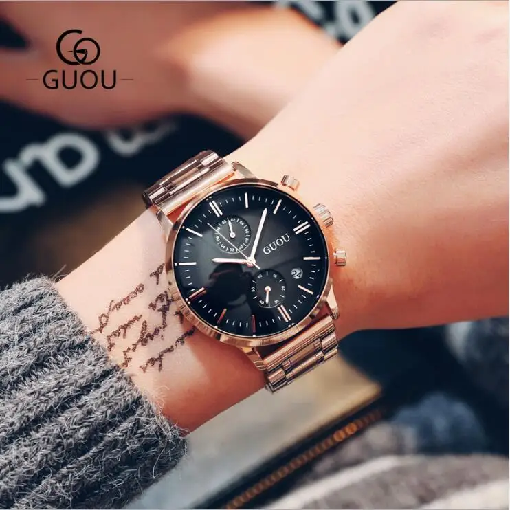 Beste Koop GUOU Mannen Horloge Hoogwaardige Merk Man Horloges Luxe Mannelijke Quartz Klokken Rvs Horloges Business Man Horloges saat Goedkoop
