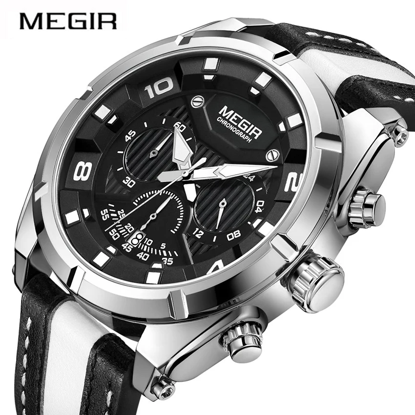 Kopen Goedkoop MEGIR Sport Mannen Horloges Chronograaf Creatieve Grote Wijzerplaat Luxe heren Quartz Horloge Merk Lederen Militaire Tijd Klok Prijs