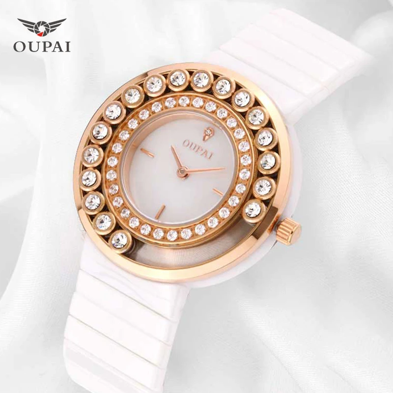 Beste Koop OUPAI Mode Quartz Horloges Vrouwen Diamonds Keramische