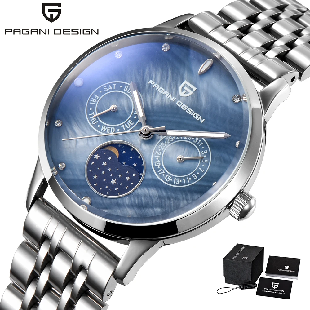 Kopen Goedkoop Pagani Ontwerp Luxe Merk Blue Quartz Horloge Vrouwen Week Display Kalender Dames Casual Horloge Zilver Staal Horloge klok mujer Prijs