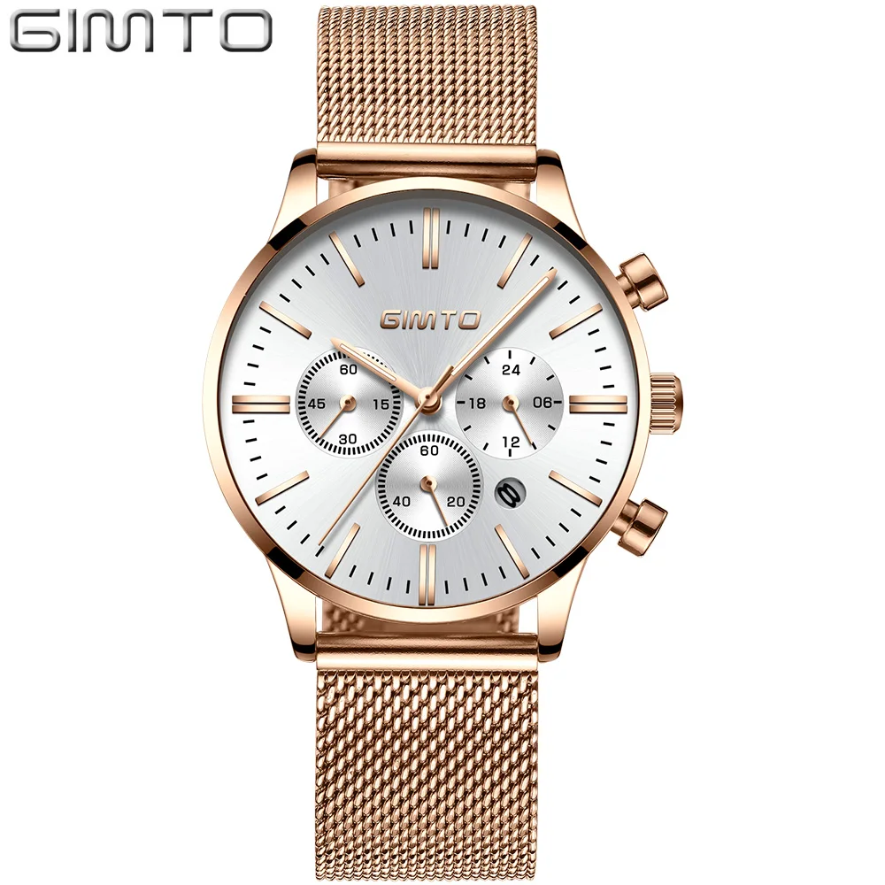 Kopen Goedkoop GIMTO Mode Dameshorloge Rose Gold Luxe Vrouwen Horloges Staal Kalender Elegante Casual Vrouwelijke Waterdichte Klok voor meisje 2018 Prijs