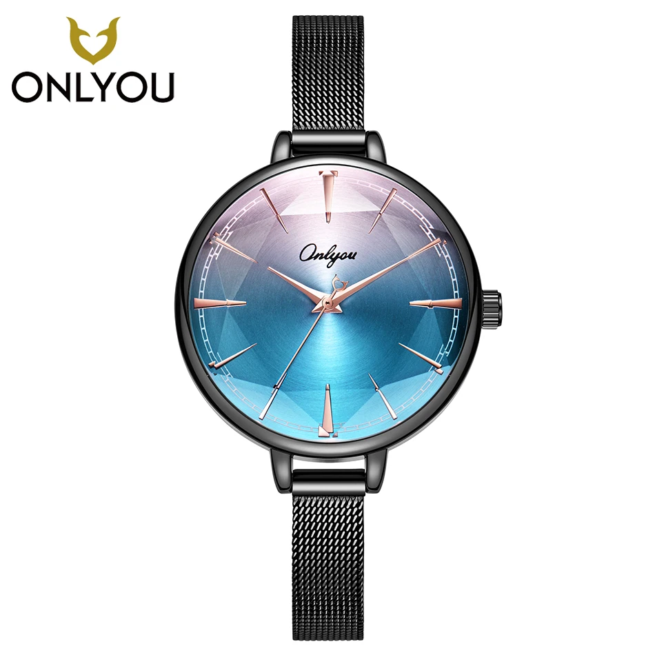 Kopen Goedkoop ONLYOU Kleurrijke Gradient Vrouwen Horloge Mode Mesh Staal Horlogeband Ruit Oppervlak Quartz Horloge Dames Luxe Vrouwelijke Klok Online