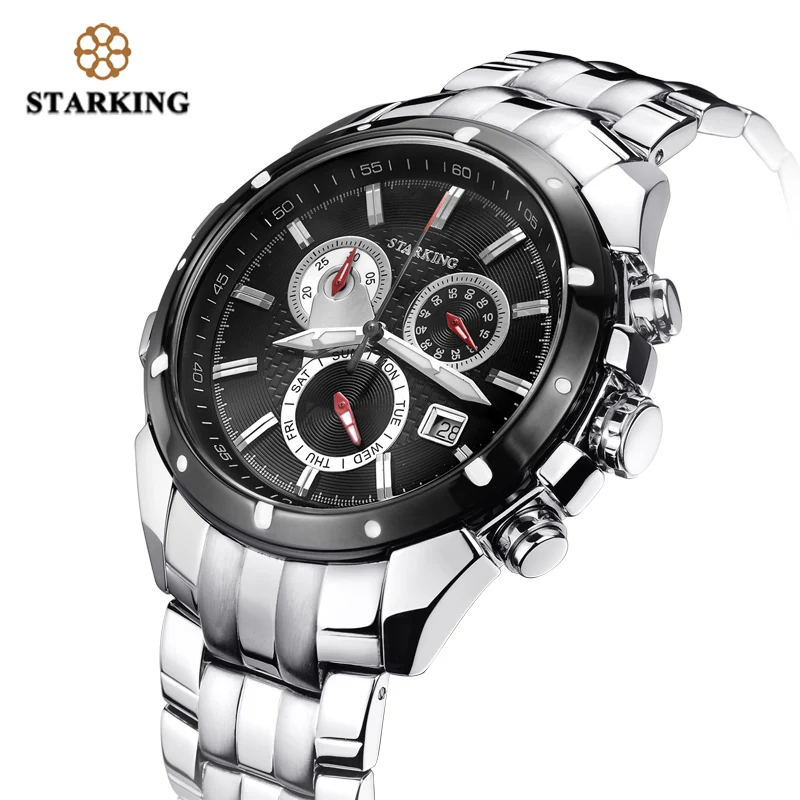 Goede Koop STARKING Merk Luxe Casual Herenhorloge Militaire Leger Lichtgevende Zwart Horloges Rvs Waterdichte Quartz Chronograaf Klok Goedkoop