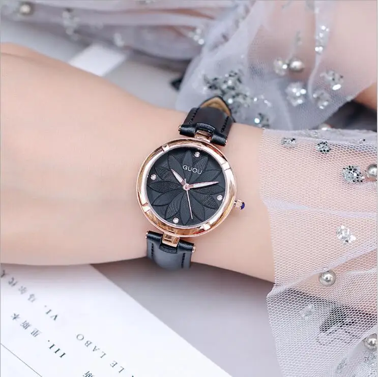 Beste Koop Reloj Mujer GUOU Horloge Vrouwen Horloges Mode Bloem Patroon