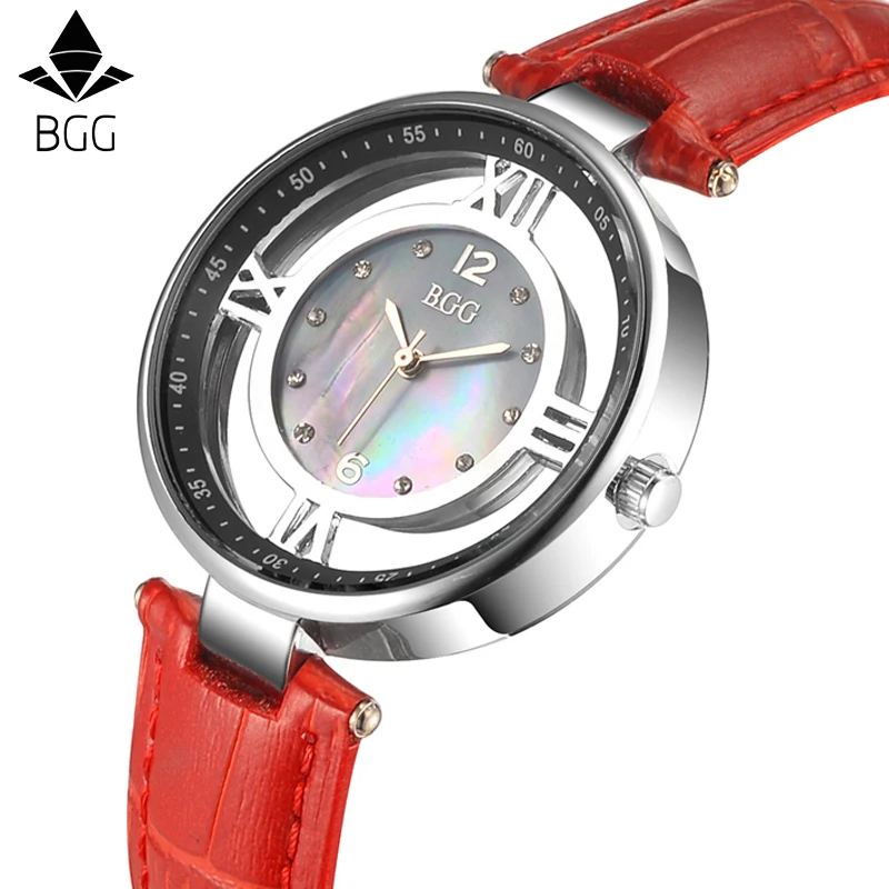 Kopen Goedkoop Vrouwen Echt Lederen Jurk Horloges Dames Luxe Shell Dial