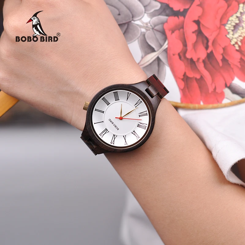 Beste Kopen BOBO VOGEL Romeinse Cijfer Schaal Vrouwen Houten Bamboe Quartz Horloges Dames Polshorloge met Hout Band in Geschenkdoos Goedkoop