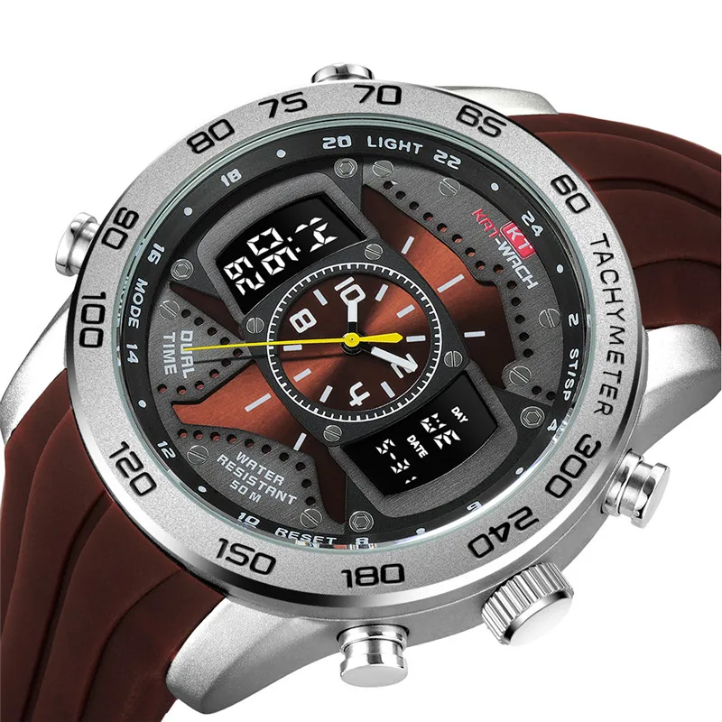 Beste Koop KAT WACH Waterdicht Mannen Horloge Grote Size over 50mm Rubber Strap Sport Horloge Goedkoop