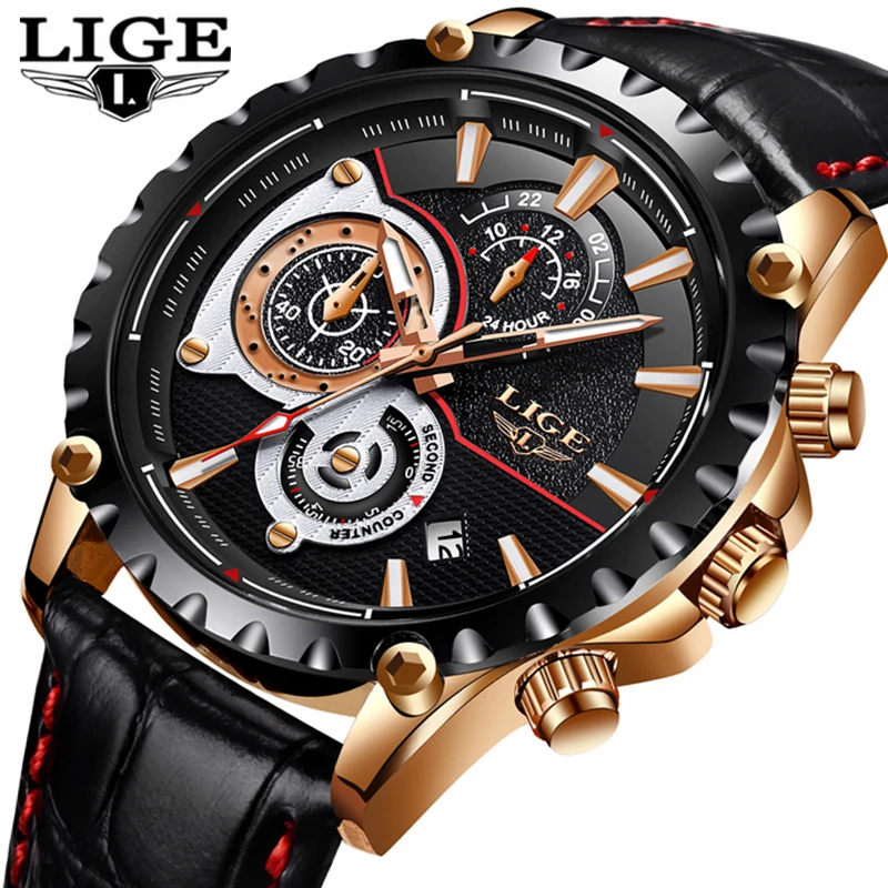 Kopen Goedkoop LUIK Mannen Horloge Topmerk Luxe Quartz Chronograaf Lederen Waterdichte Casual Mode Mannelijke Militaire Sport Horloge Relogio Masculino Prijs