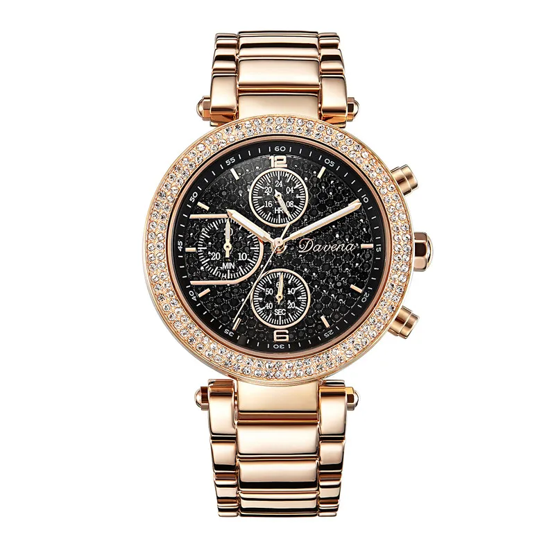Beste Koop Vogue Meisjes Unisex Full Staal Jurk Horloges Big Size Starry Crystal Vrouwen Neutrale polshorloge Quartz Montre Femme Werkbaar 3 eye Goedkoop