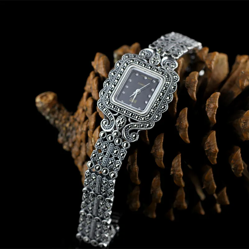Kopen Goedkoop HF Top Kwaliteit Vrouwen Real Silver Quartz Horloge S925 Zilveren Armband Vierkante Horloge Puur Zilveren Armband Horloges Echte Zilveren Bangle Prijs