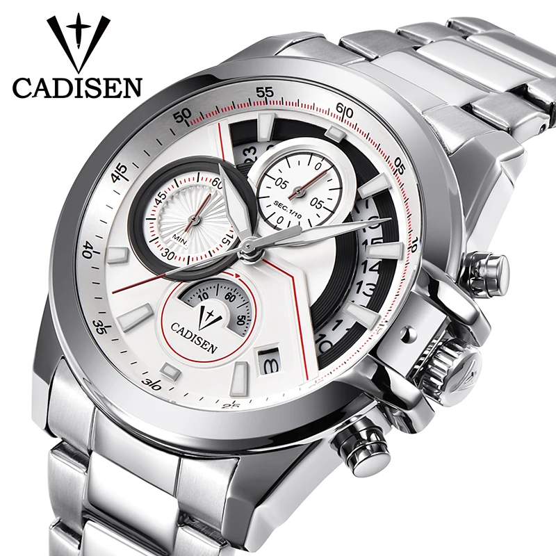 Kopen Goedkoop Mannen horloge CADISEN top merk luxe Horloge Waterdicht Quartz Horloge Mannen Roestvrij Staal business Sport Klok Relogio Masculino Online
