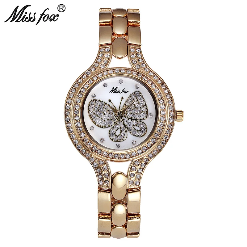 Kopen Goedkoop Miss Fox 37mm Horloge Mode Goud Vlinder Diamant Tienermeisjes Horloges Vrouwen Rvs Terug waterbestendig Gouden Klok Prijs